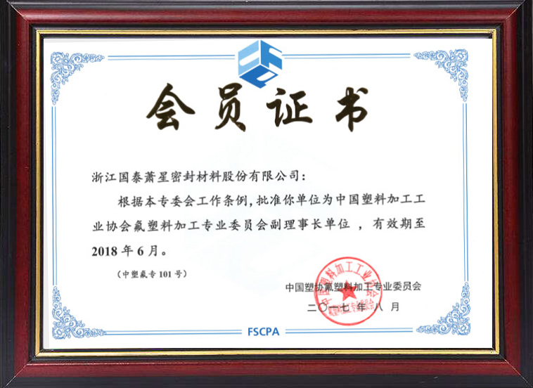 中国塑料加工工业协会氟塑料加工专业委员会副理事长单位