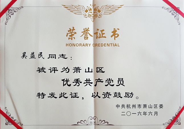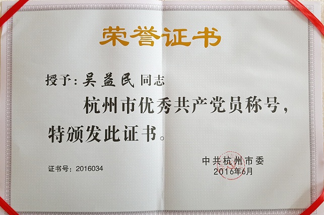 在庆祝中国共产党成立95周年之际,国泰密封党的建设又传喜讯。我司常务副总经理兼总工程师吴益民同志获得了中共杭州市委、中共萧山区委两级“优秀共产党员”表彰。