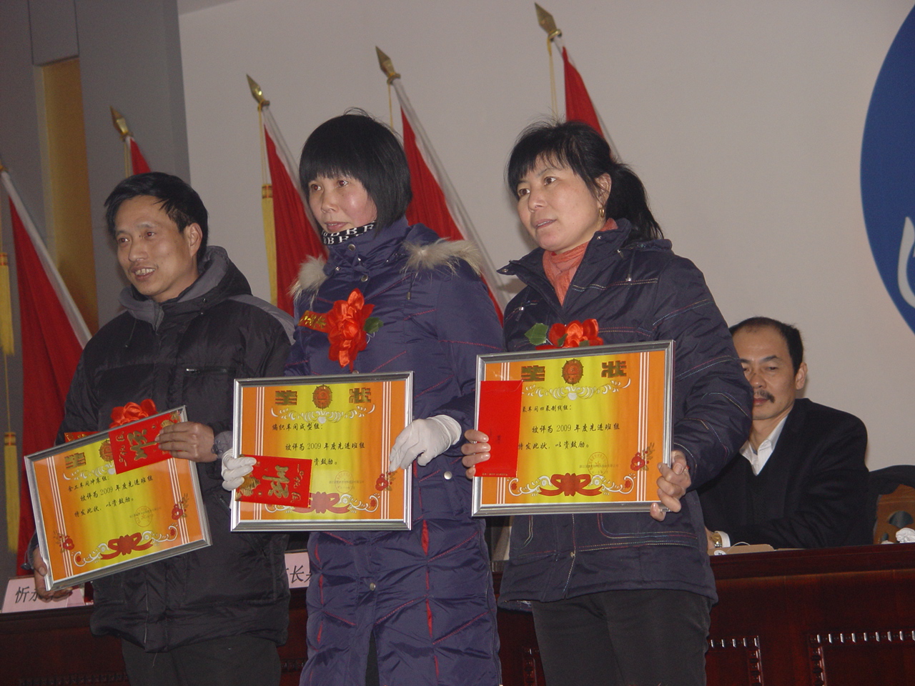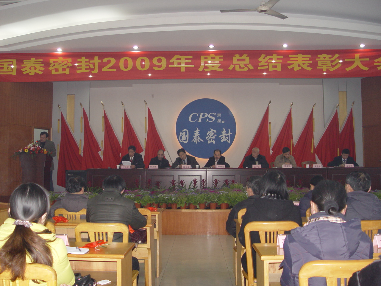 2010年2月6日下午,国泰密封09年度总结表彰大会在公司大会堂召开,会议由常务副总吴益民主持。公司董事长、总经理孙锦龙对09年工作进行了总结,并对2010年工作提出了新的要求,他指出尽管金融危机影响到我们经营业绩,给我们的生产、销售等带来了一定的困难和挑战,但经过全体员工的共同努力,我们的市场份额并没有减少,局部还开发了新市场。在新一年里,坚信在公司高层的正确领导下,全体员工齐心协力国泰密封一定会再创辉煌。随后生产副总蒋忠灿宣读了09年度的公司重大创新奖、先进集体和先进个人名单,在欢乐的音乐声中对各先进进行了表彰。颁奖后,先进集体代表章佳红、先进个人代表俞立丰上台作了获奖感言,杭州高投公司总经理陈长泉和公司创始人孙子仁也分别在台上讲话。