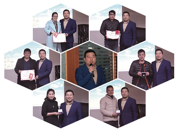 在听取了分部经理、销售员代表的发言后,主持人宣读了2016年在营销工作中表现突出、业绩优异的各项先进人员名单,以及2016年金牌、银牌销售员获得者名单。董事长兼总经理孙锦龙、内贸副总经理俞江帆分别向获奖人员颁发了荣誉证书、徽章和奖金。