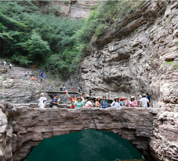 中午12点到达目的地,休整用餐后,开始游览大峡谷景观—景景相连,山灵水秀的谷中之谷桃花谷和拥有壮美风光、百里画廊之称的太行天路。桃花谷内黄龙潭、飞龙峡瀑布、飞龙峡栈道、九连瀑等景点珠联璧合,显示出深峡藏秀的悠远意境。“太行天路”景区位于太行山之巅,全长约30km,一路望去,峡谷深邃、岩壁峭立,仿佛鬼斧神工,大气磅礴。